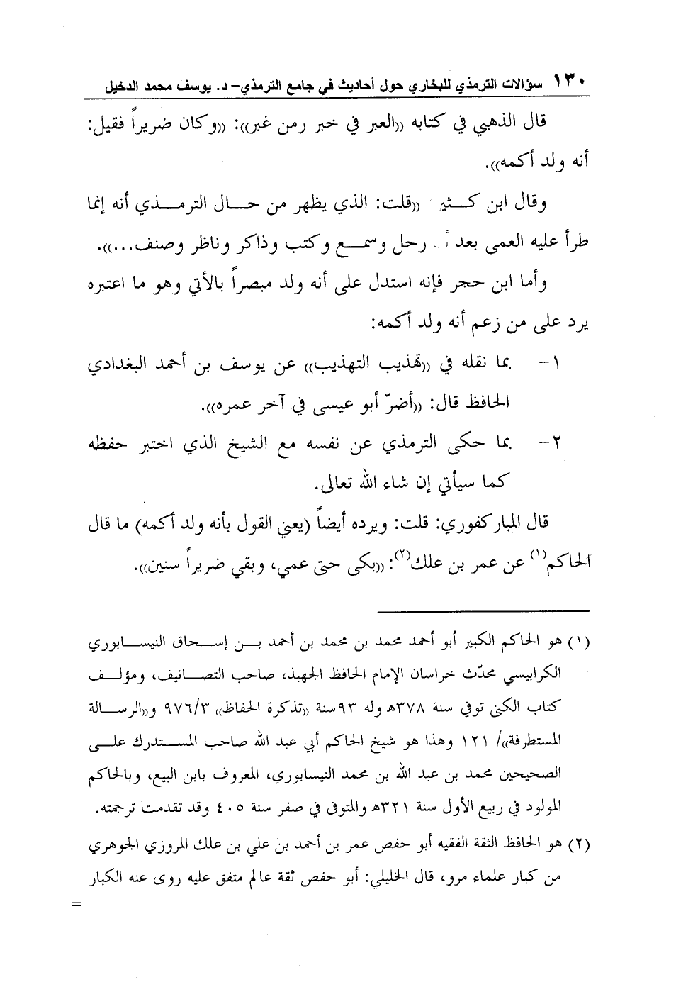 بما نقله في "تهذيب التهذيب" عن يوسف بن أحمد البغدادي الحافظ قال: "أضرّ أبو عيسى في آخر عمره".
