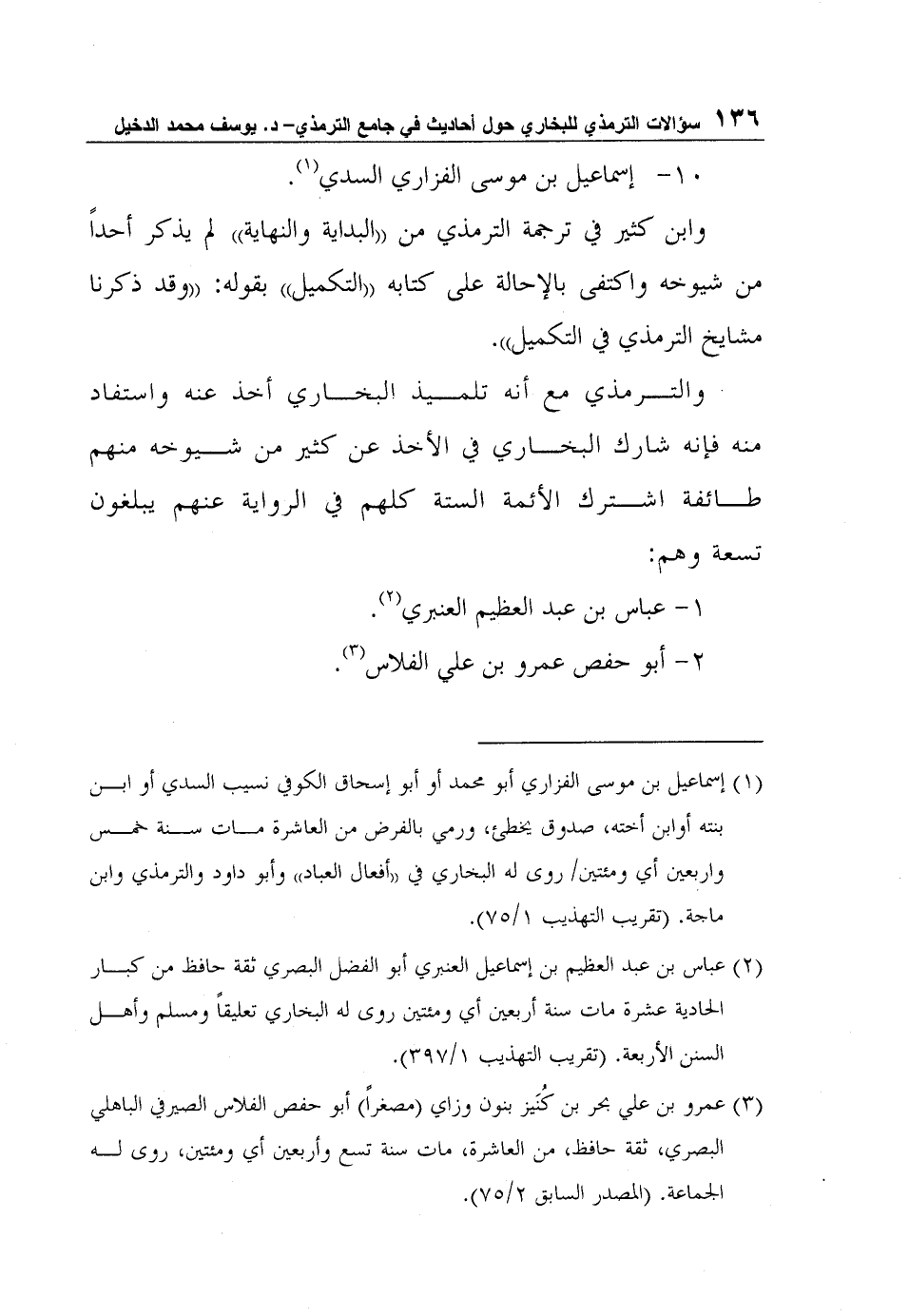 كتاب سؤالات الترمذي للبخاري حول أحاديث في جامع الترمذي