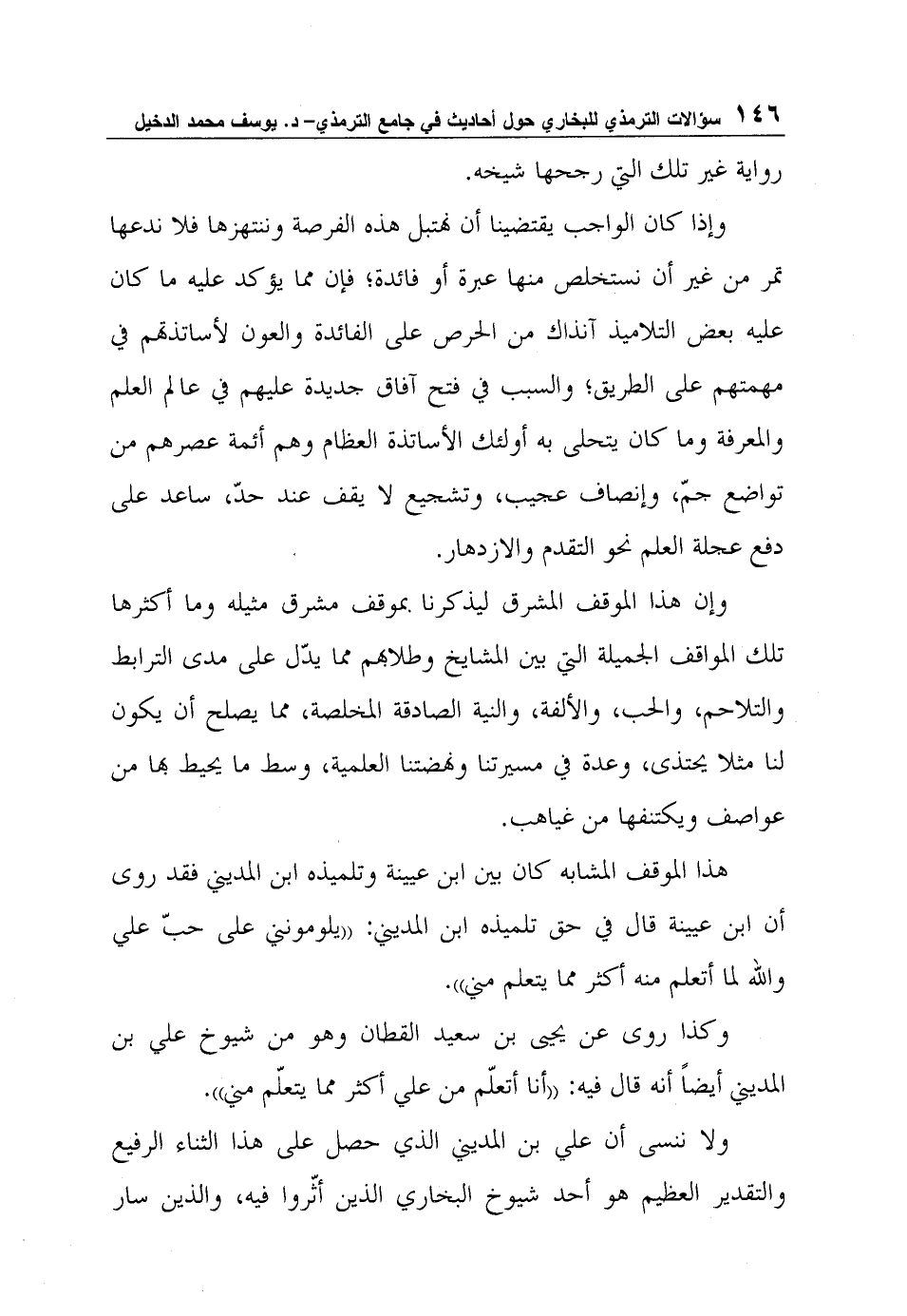 ولا ننسى أن علي بن المديني الذي حصل على هذا الثناء الرفيع والتقدير العظيم هو أحد شيوخ البخاري الذين أثّروا فيه، والذين سار