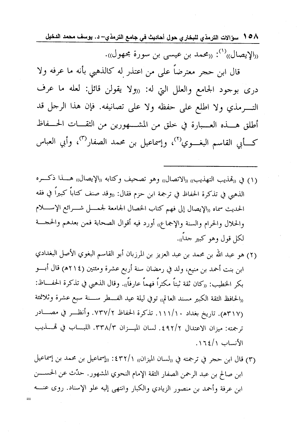 "الإيصال"1: "محمد بن عيسى بن سورة مجهول".
