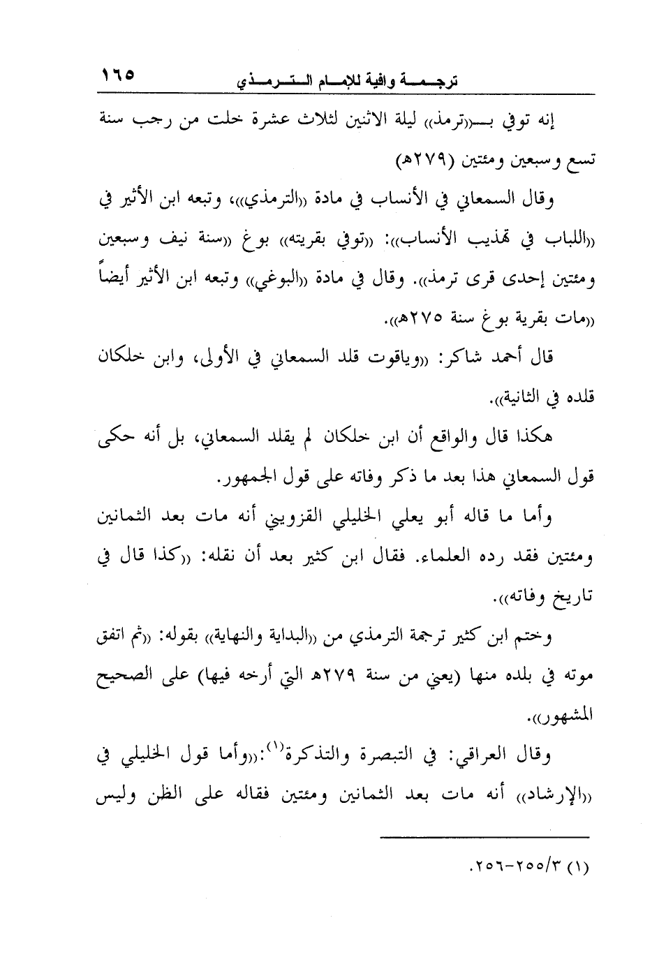 وختم ابن كثير ترجمة الترمذي من "البداية والنهاية" بقوله: "ثم اتفق موته في بلده منها (يعني من سنة 279? التي أرخه فيها) على الصحيح المشهور".