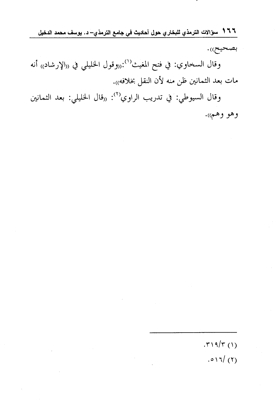 وقال السيوطي: في تدريب الراوي2: "قال الخليلي: بعد الثمانين وهو وهم".