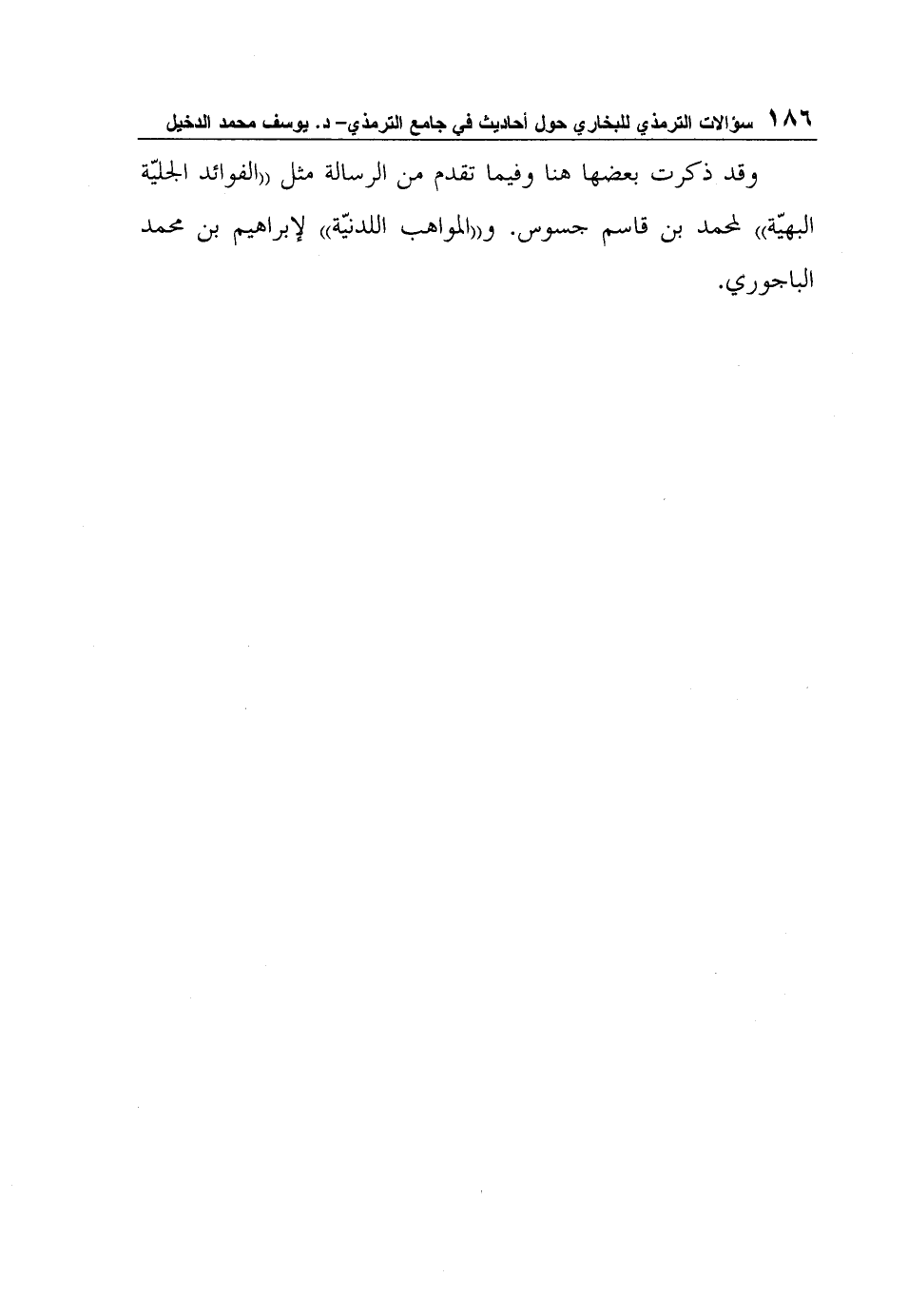 وقد ذكرت بعضها هنا وفيما تقدم من الرسالة مثل "الفوائد الجليّة البهيّة" لمحمد بن قاسم جسوس. و"المواهب اللدنيّة" لإبراهيم بن محمد الباجوري.