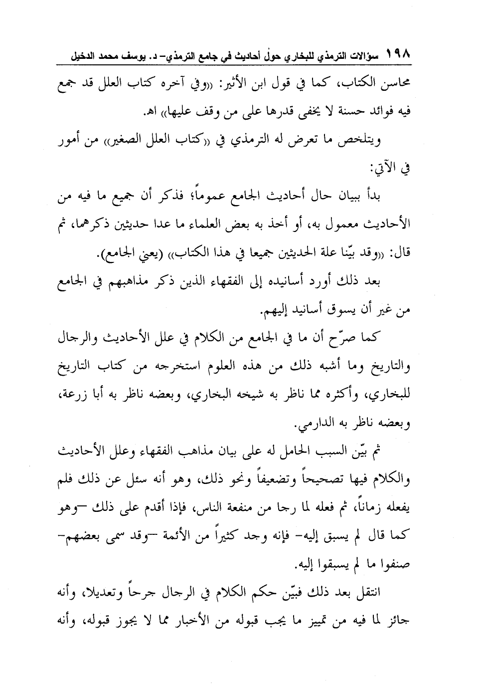 كتاب سؤالات الترمذي للبخاري حول أحاديث في جامع الترمذي