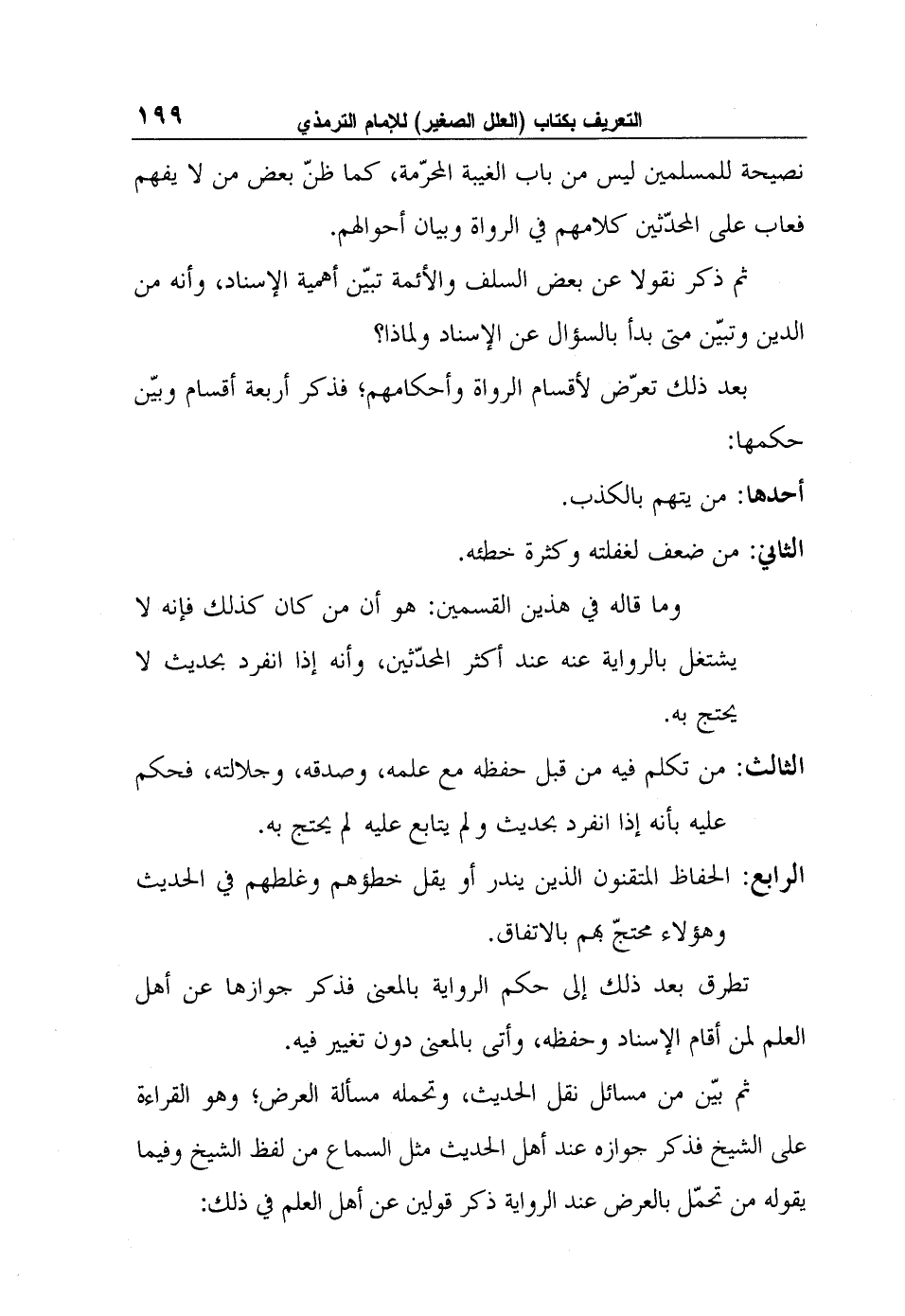 بعد ذلك تعرّض لأقسام الرواة وأحكامهم؛ فذكر أربعة أقسام وبيّن حكمها: