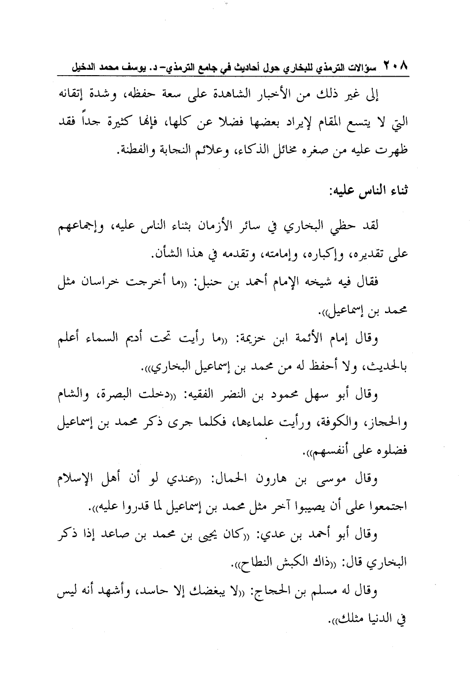 كتاب سؤالات الترمذي للبخاري حول أحاديث في جامع الترمذي