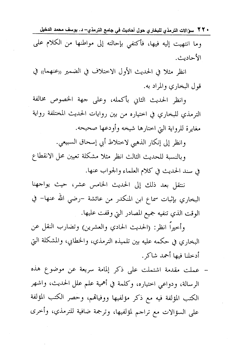 كتاب سؤالات الترمذي للبخاري حول أحاديث في جامع الترمذي