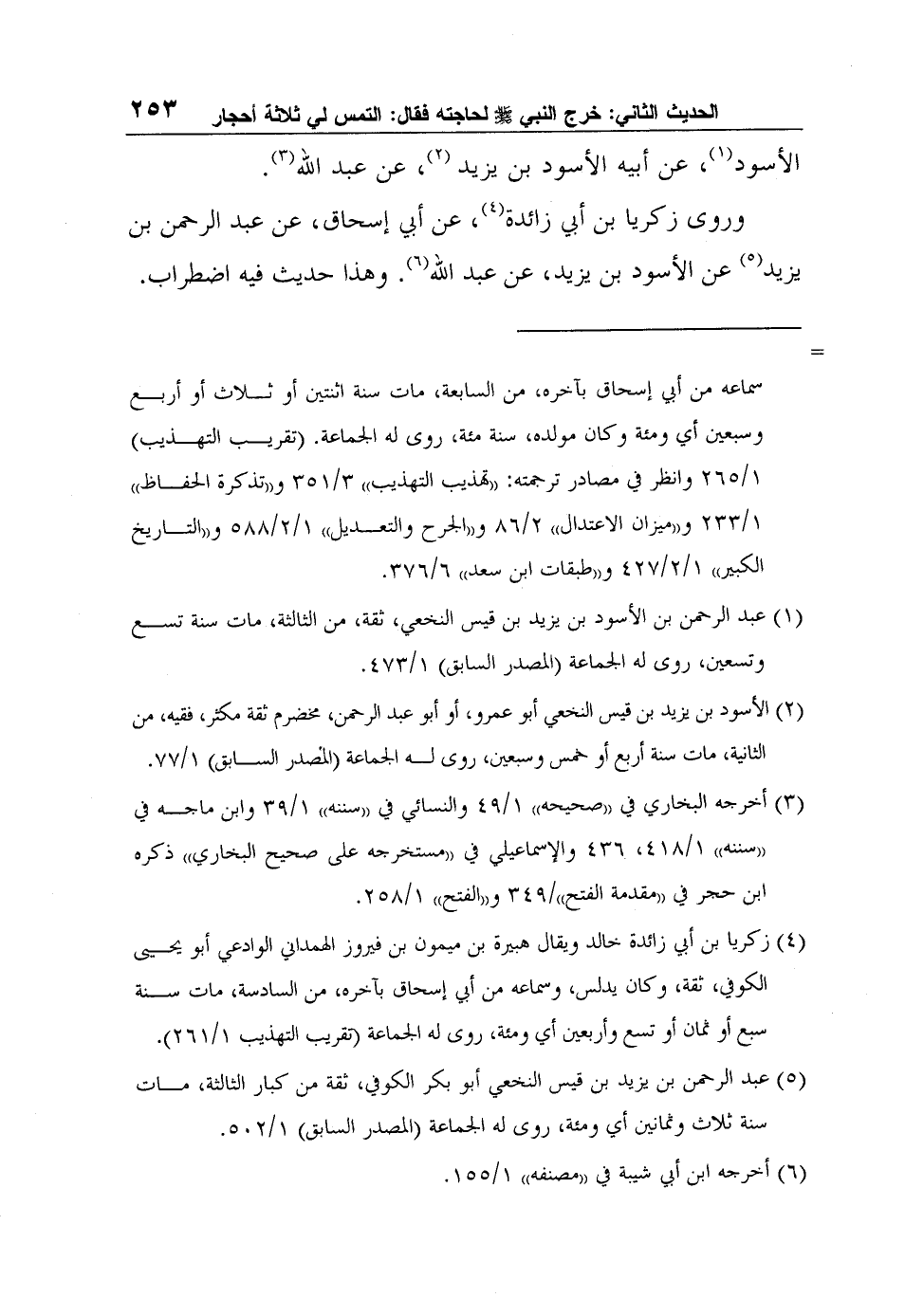 5 عبد الرحمن بن يزيد بن قيس النخعي أبو بكر الكوفي، ثقة من كبار الثالثة، مات سنة ثلاث وثمانين أي ومئة، روى له الجماعة (المصدر السابق) 1/502.