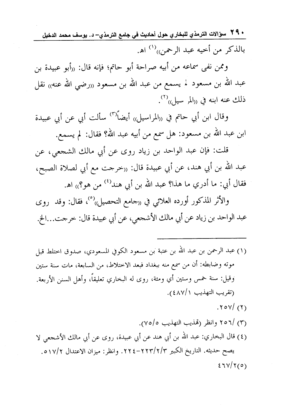 وممن نفى سماعه من أبيه صراحة أبو حاتم؛ فإنه قال: "أبو عبيدة بن عبد الله بن مسعود لم يسمع من عبد الله بن مسعود "رضي الله عنه" نقل ذلك عنه ابنه في "المراسيل"2.