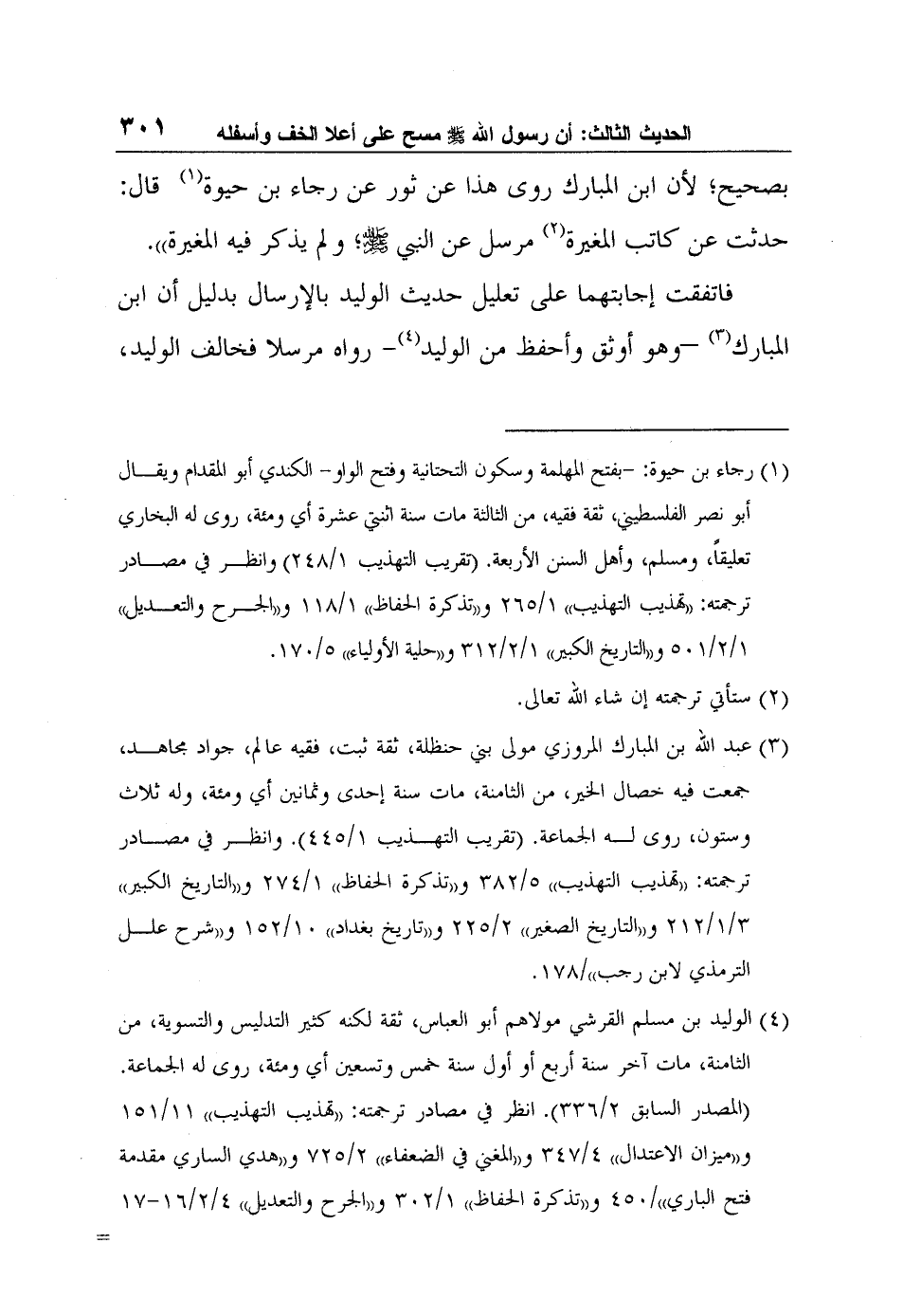 4 الوليد بن مسلم القرشي مولاهم أبو العباس، ثقة لكنه كثير التدليس والتسوية، من الثامنة، مات آخر سنة أربع أو أول سنة خمس وتسعين أي ومئة، روى له الجماعة. (المصدر السابق 2/336) . انظر في مصادر ترجمته: "تهذيب التهذيب" 11/151 و"ميزان الاعتدال" 4/347 و"المغني في الضعفاء" 2/725 و"هدي الساري مقدمة فتح الباري"/450 و"تذكرة الحفاظ" 1/302 و"الجرح والتعديل" 4/2/16-17 و"التاريخ الكبير" 4/2/152-153 و"التاريخ الصغير" 2/276-277