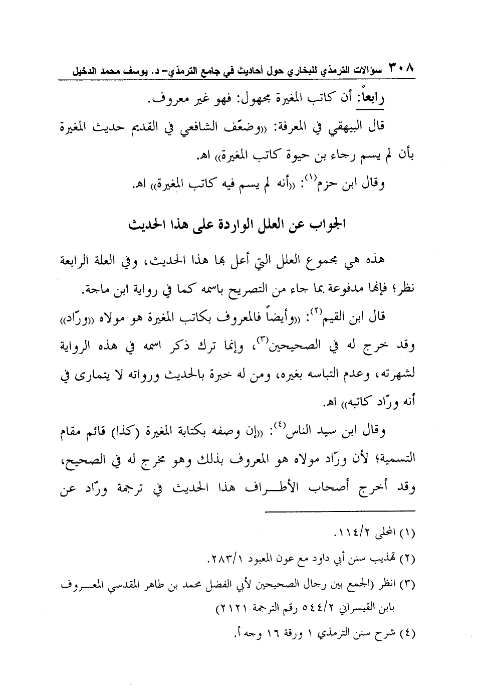 قال ابن القيم2: "وأيضاً فالمعروف بكاتب المغيرة هو مولاه "ورّاد" وقد خرج له في الصحيحين3، وإنما ترك ذكر اسمه في هذه الرواية لشهرته، وعدم التباسه بغيره، ومن له خبرة بالحديث ورواته لا يتمارى في أنه ورّاد كاتبه" ا?.