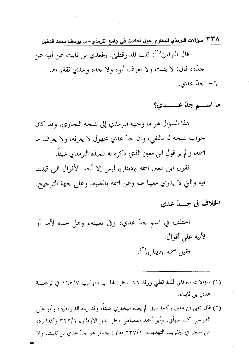 1 سؤالات البرقاني للدارقطني ورقة 16. انظر: تهذيب التهذيب 7/165 في ترجمة عدي بن ثابت.