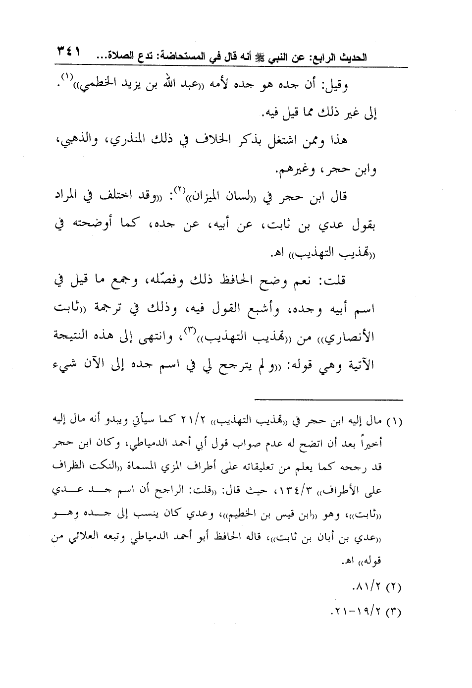 1 مال إليه ابن حجر في "تهذيب التهذيب" 2/21 كما سيأتي ويبدو أنه مال إليه أخيراً بعد أن اتضح له عدم صواب قول أبي أحمد الدمياطي، وكان ابن حجر قد رجحه كما يعلم من تعليقاته على أطراف المزي المسماة "النكت الظراف على الأطراف" 3/134، حيث قال: "قلت: الراجح أن اسم جد عدي "ثابت"، وهو "ابن قيس بن الخطيم"، وعدي كان ينسب إلى جده وهو "عدي بن أبان بن ثابت"، قاله الحافظ أبو أحمد الدمياطي وتبعه العلائي من قوله" ا?.