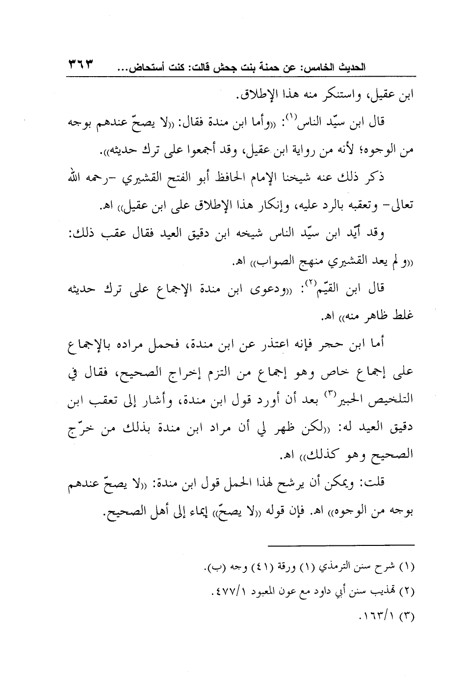قال ابن سيّد الناس1: "وأما ابن مندة فقال: "لا يصحّ عندهم بوجه من الوجوه؛ لأنه من رواية ابن عقيل، وقد أجمعوا على ترك حديثه".