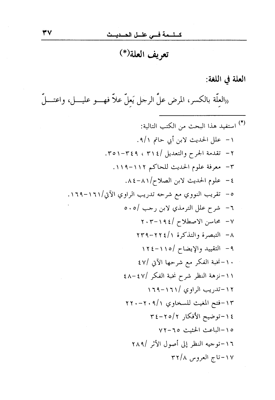 "العِلّة بالكسر، المرض علَّ الرجل يَعِلّ علاّ فهو عليل، واعتلّ