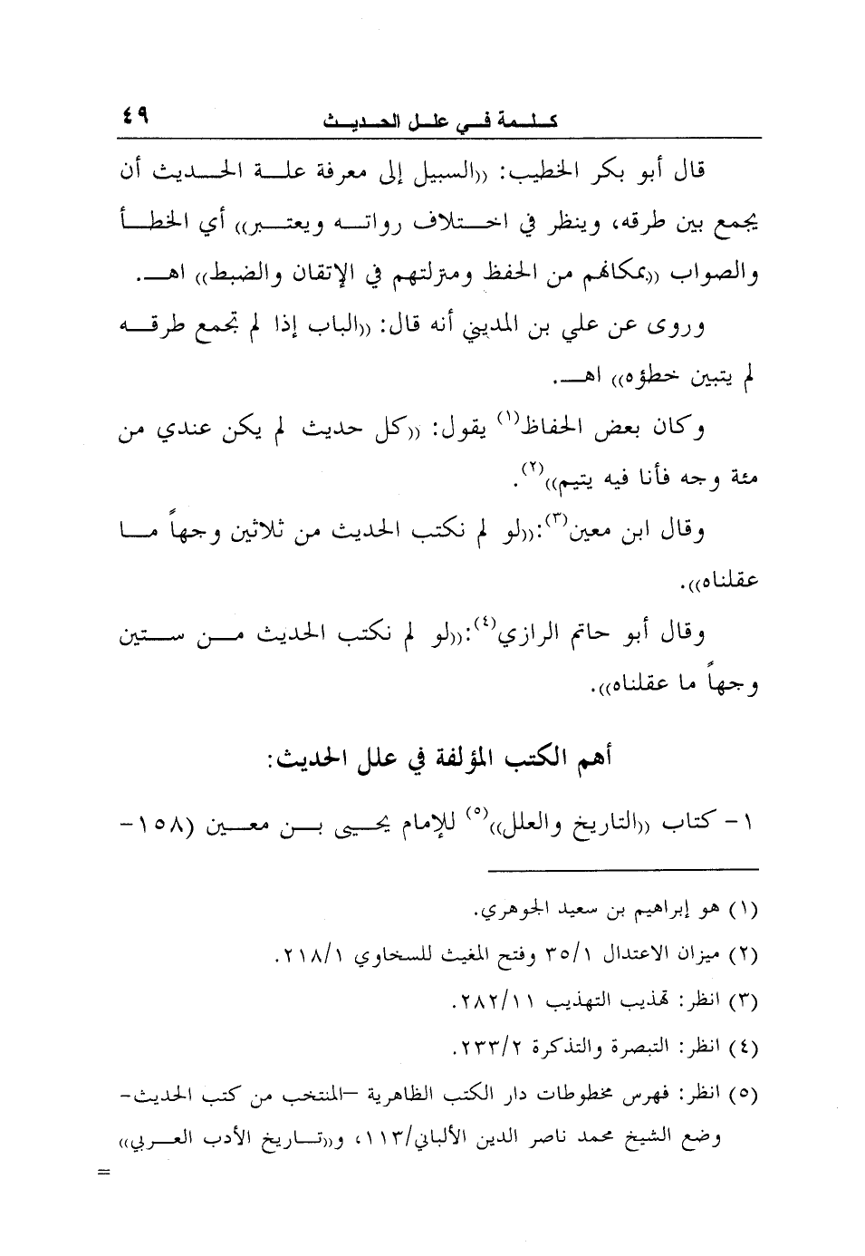 كتاب "التاريخ والعلل"5 للإمام يحيى بن معين (158-