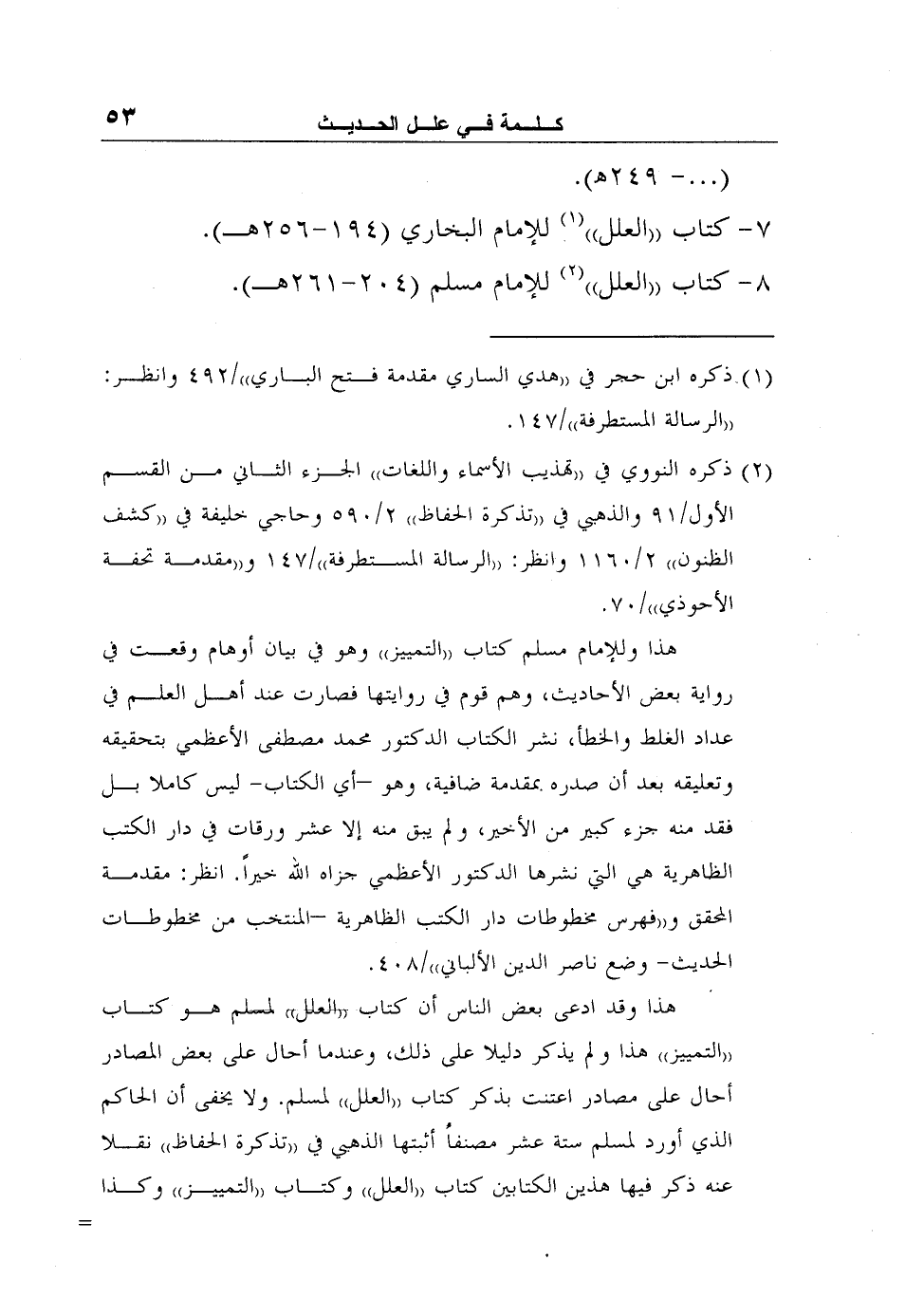 كتاب "العلل"2 للإمام مسلم (204-261هـ) .