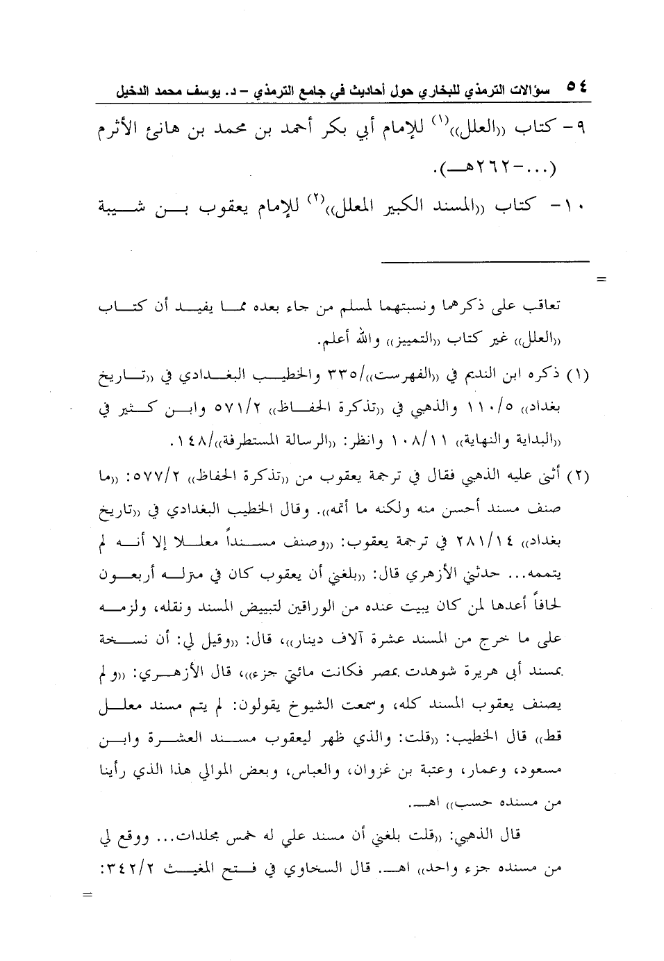 كتاب "المسند الكبير المعلل"2 للإمام يعقوب بن شيبة