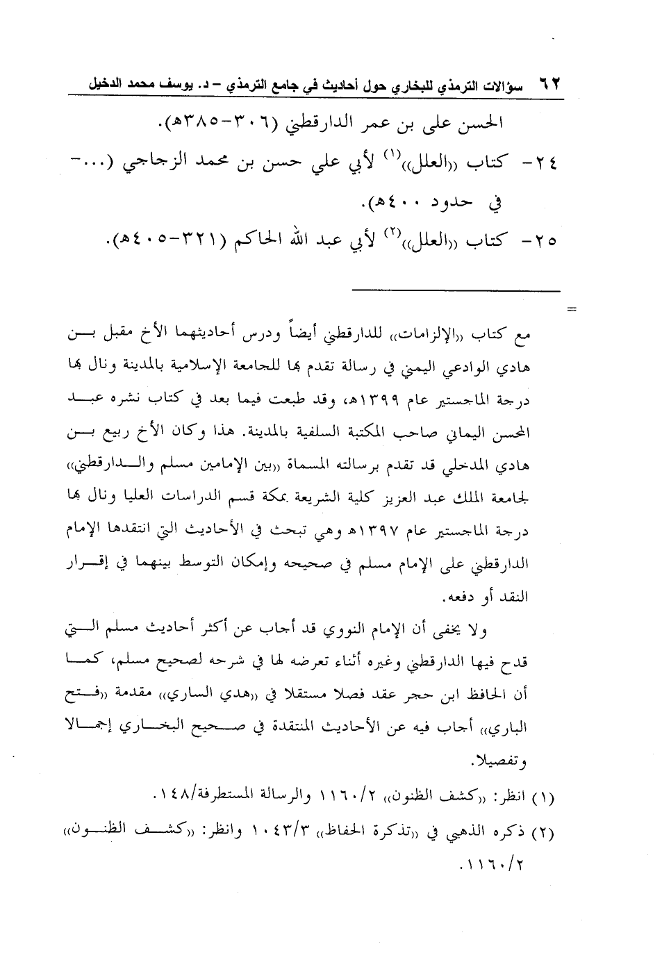 كتاب "العلل"2 لأبي عبد الله الحاكم (321-405?) .