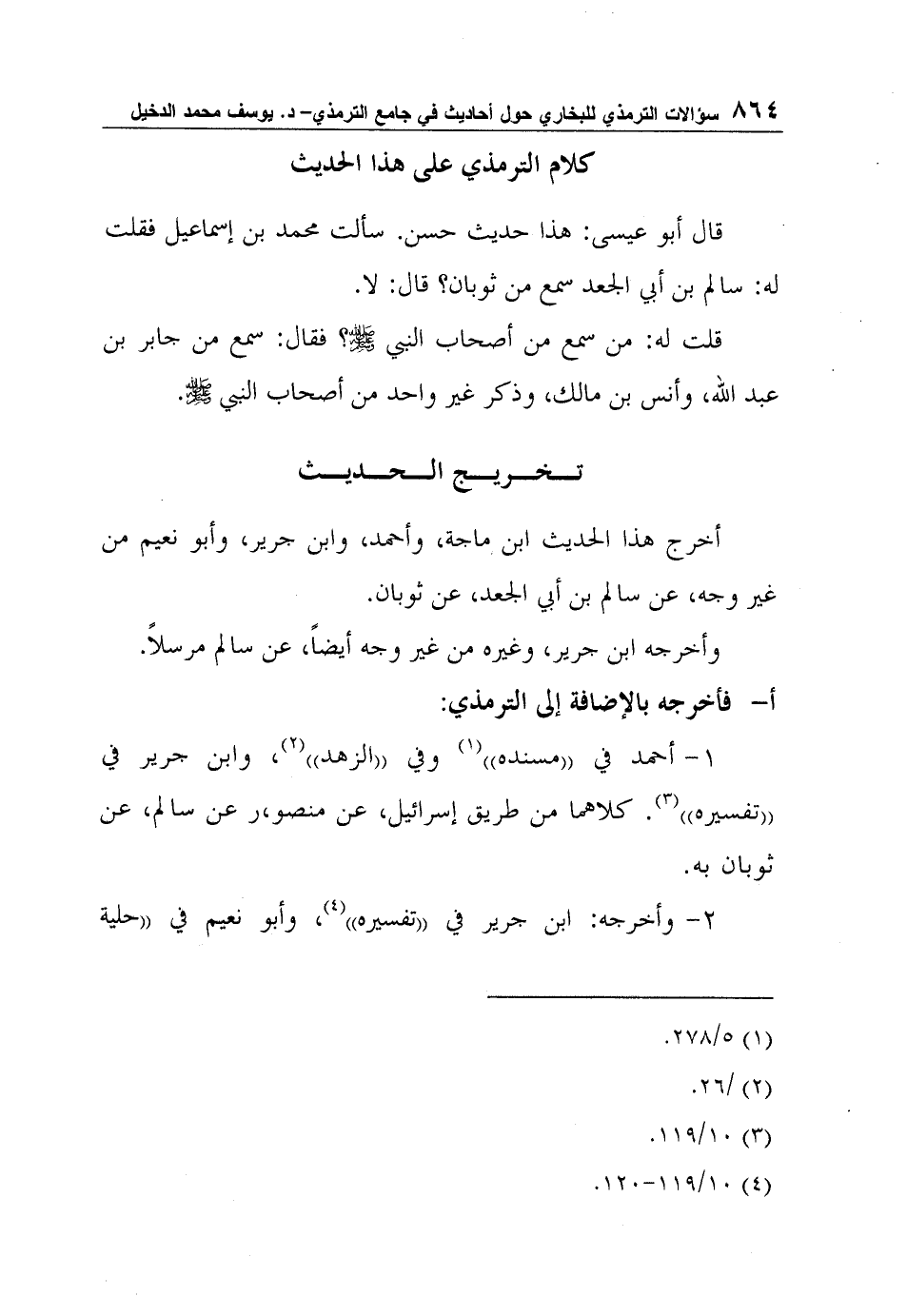 قال أبو عيسى: هذا حديث حسن. سألت محمد بن إسماعيل فقلت له: سالم بن أبي الجعد سمع من ثوبان؟ قال: لا.