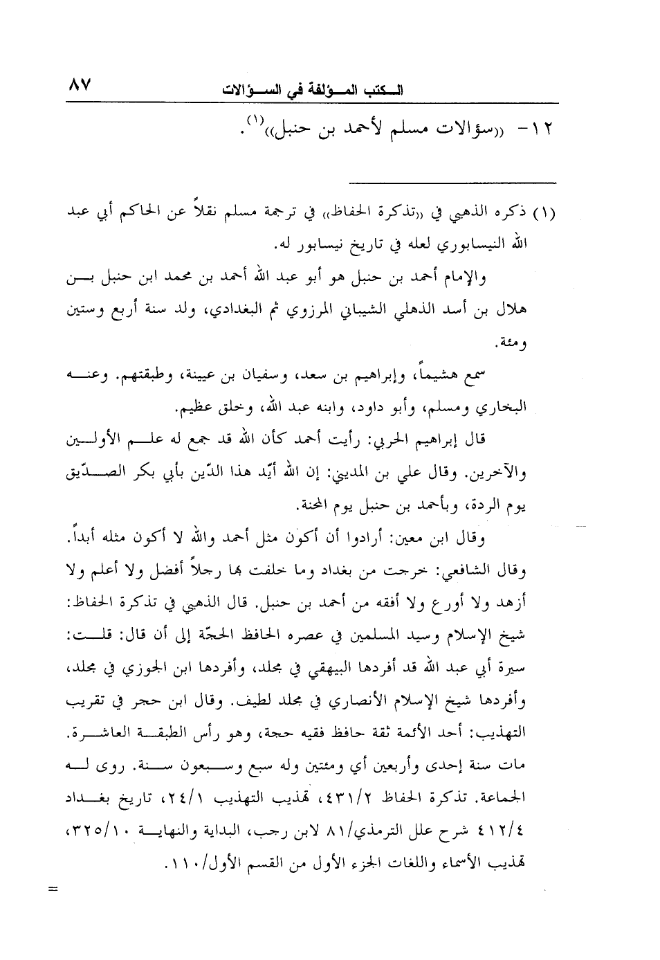 "سؤالات مسلم لأحمد بن حنبل"1.