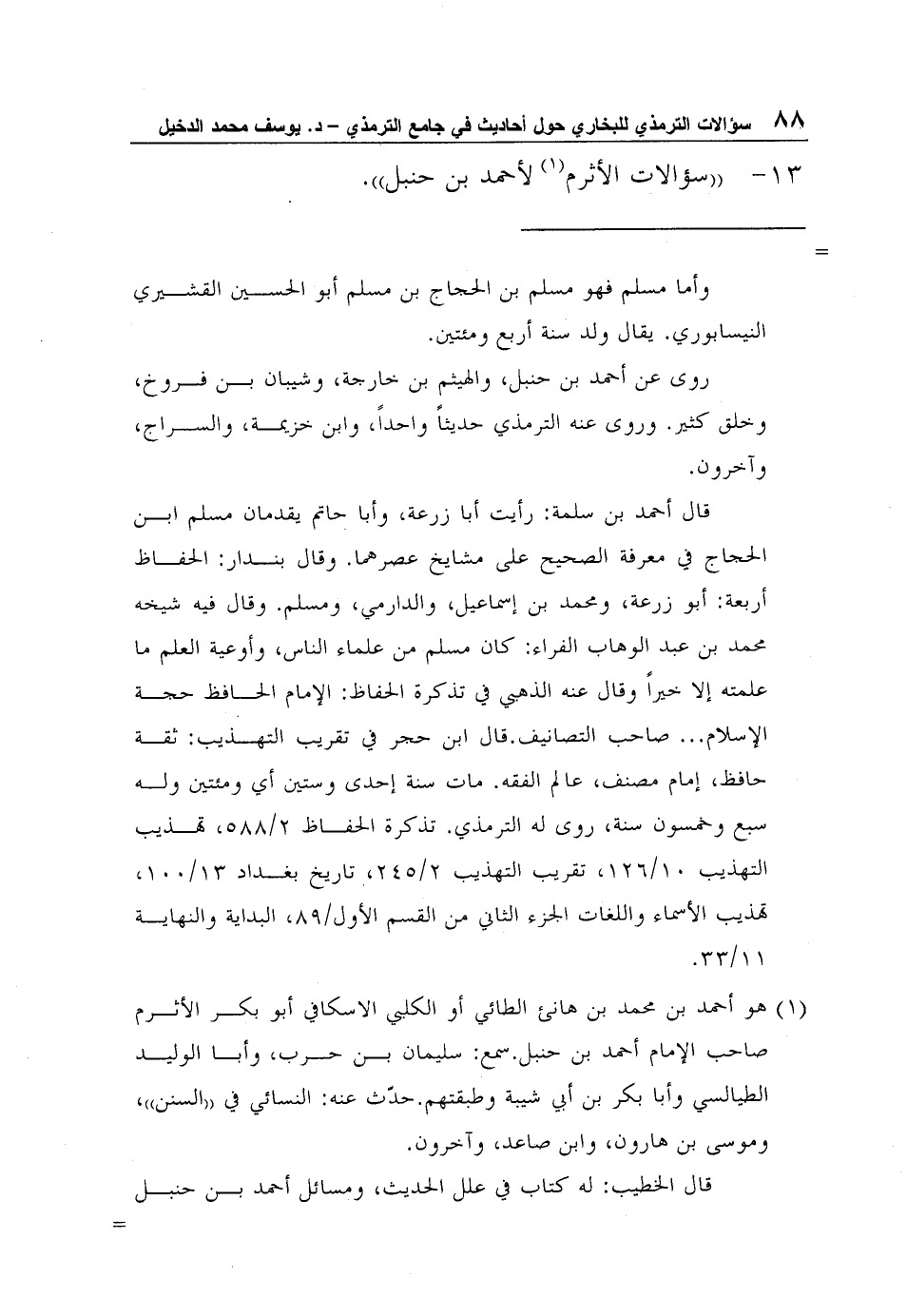 "سؤالات الأثرم1 لأحمد بن حنبل".