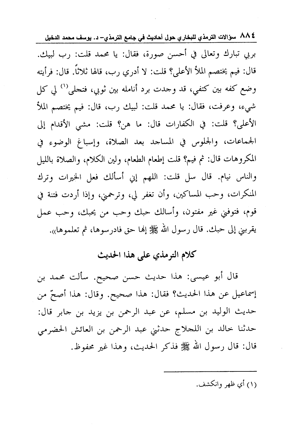 قال أبو عيسى: هذا حديث حسن صحيح. سألت محمد بن إسماعيل عن هذا الحديث؟ فقال: هذا صحيح. وقال: هذا أصحّ من حديث الوليد بن مسلم، عن عبد الرحمن بن يزيد بن جابر قال: حدثنا خالد بن اللجلاج حدثني عبد الرحمن بن العائش الحضرمي قال: قال رسول الله صلى الله عليه وسلم فذكر الحديث، وهذا غير محفوظ.