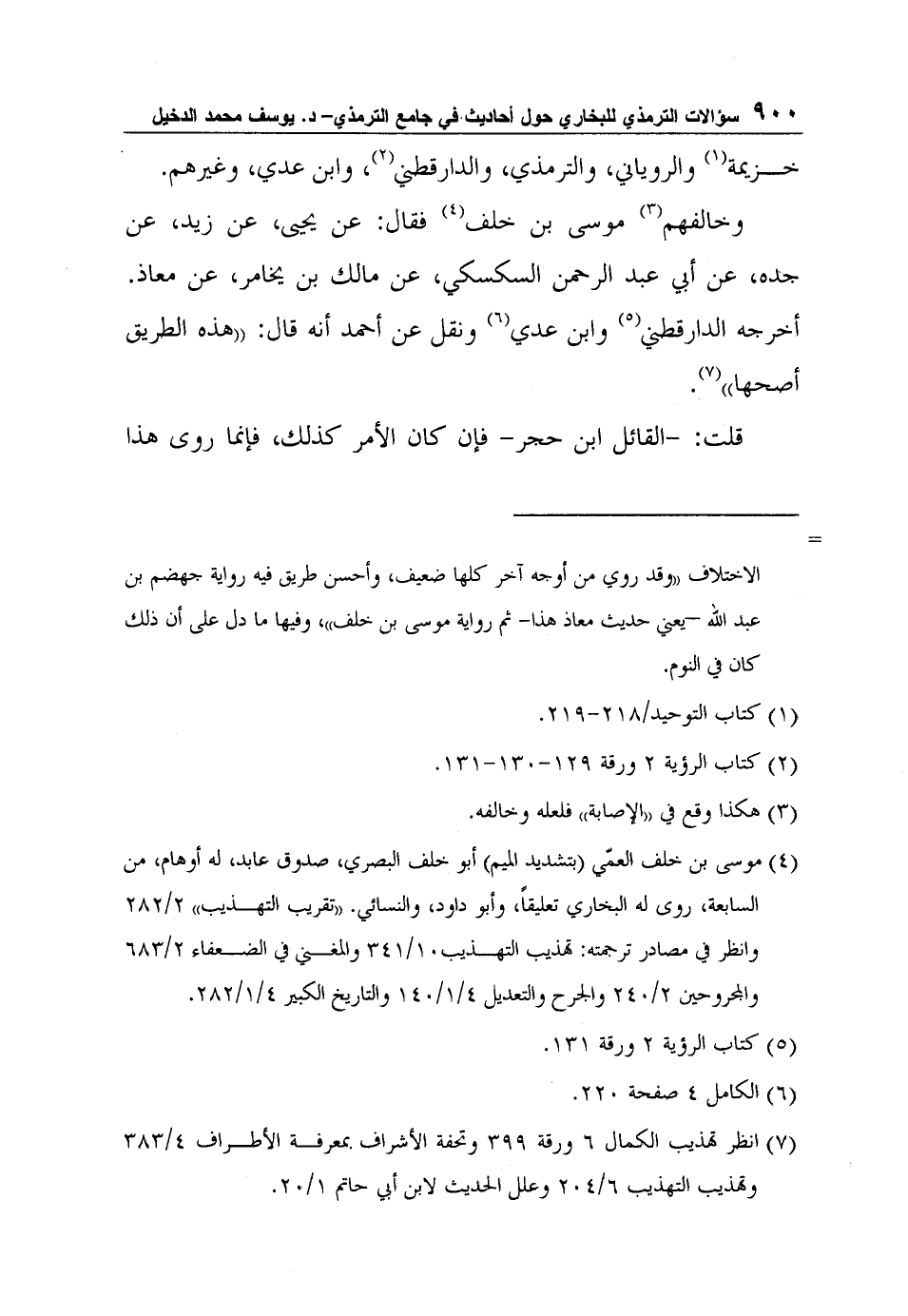 7 انظر تهذيب الكمال 6 ورقة 399 وتحفة الأشراف بمعرفة الأطراف 4/383 وتهذيب التهذيب 6/204 وعلل الحديث لابن أبي حاتم 1/20.