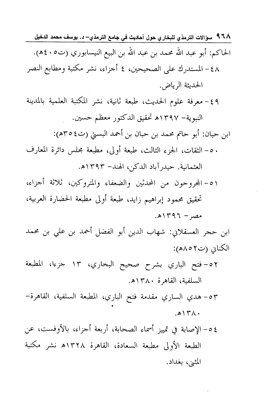 المجروحون من المحدثين والضعفاء والمتروكين، ثلاثة أجزاء، تحقيق محمود إبراهيم زايد، طبعة أولى مطبعة الحضارة العربية، مصر- 1396?.