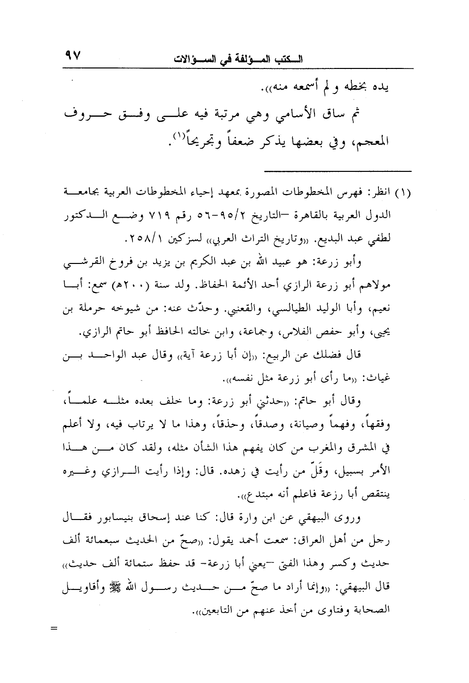 1 انظر: فهرس المخطوطات المصورة بمعهد إحياء المخطوطات العربية بجامعة الدول العربية بالقاهرة –التاريخ 2/95-56 رقم 719 وضع الدكتور لطفي عبد البديع. "وتاريخ التراث العربي" لسزكين 1/258.