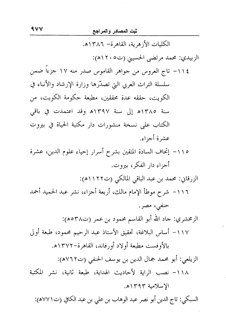 إتحاف السادة المتقين بشرح أسرار إحياء علوم الدين، عشرة أجزاء دار الفكر، بيروت.