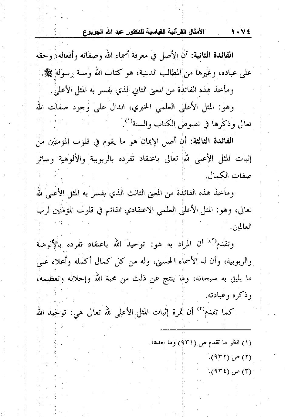 ومأخذ هذه الفائدة من المعنى الثالث الذي يفسر به المثل الأعلى لله تعالى، وهو: المثل الأعلى العلمي الاعتقادي القائم في قلوب المؤمنين لرب العالمين.