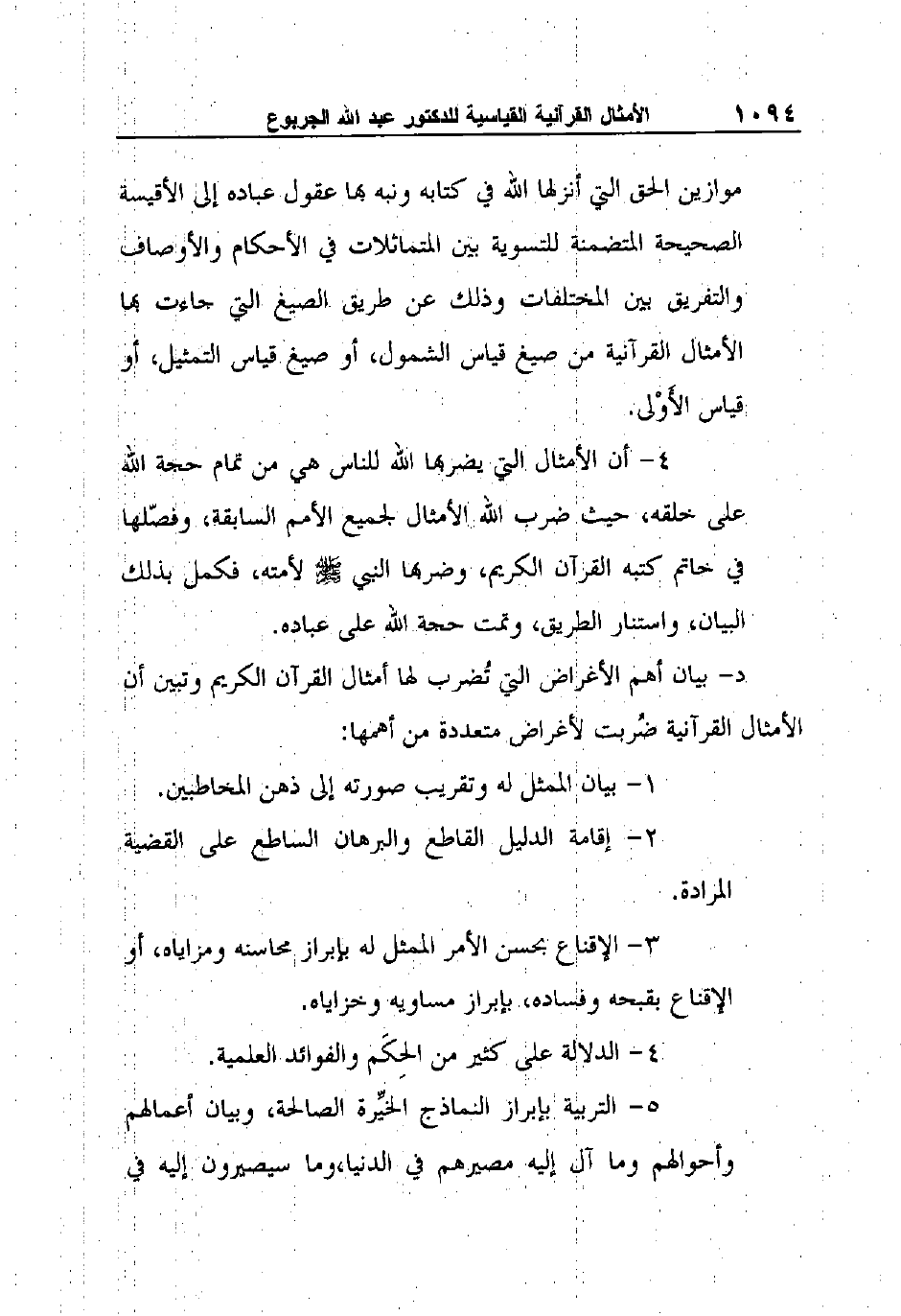 4- أن الأمثال التي يضربها الله للناس هي من تمام حجة الله على خلقه، حيث ضرب الله الأمثال لجميع الأمم السابقة، وفصّلها في خاتم كتبه القرآن الكريم، وضربها النبي صلى الله عليه وسلم لأمته، فكمل بذلك البيان، واستنار الطريق، وتمت حجة الله على عباده.