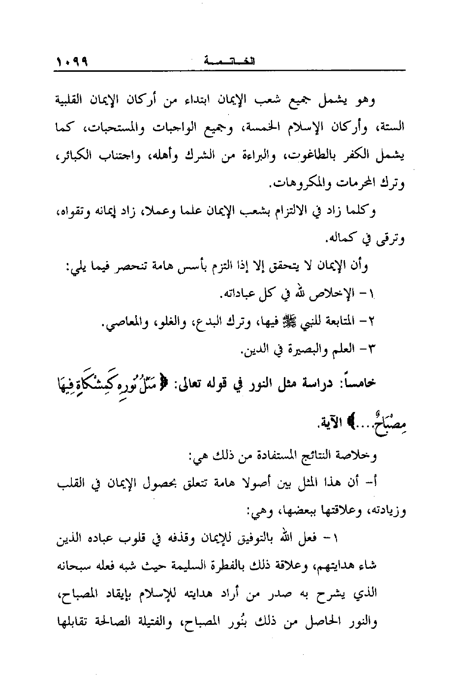 وأن الإيمان لا يتحقق إلا إذا التزم بأسس هامة تنحصر فيما يلي: