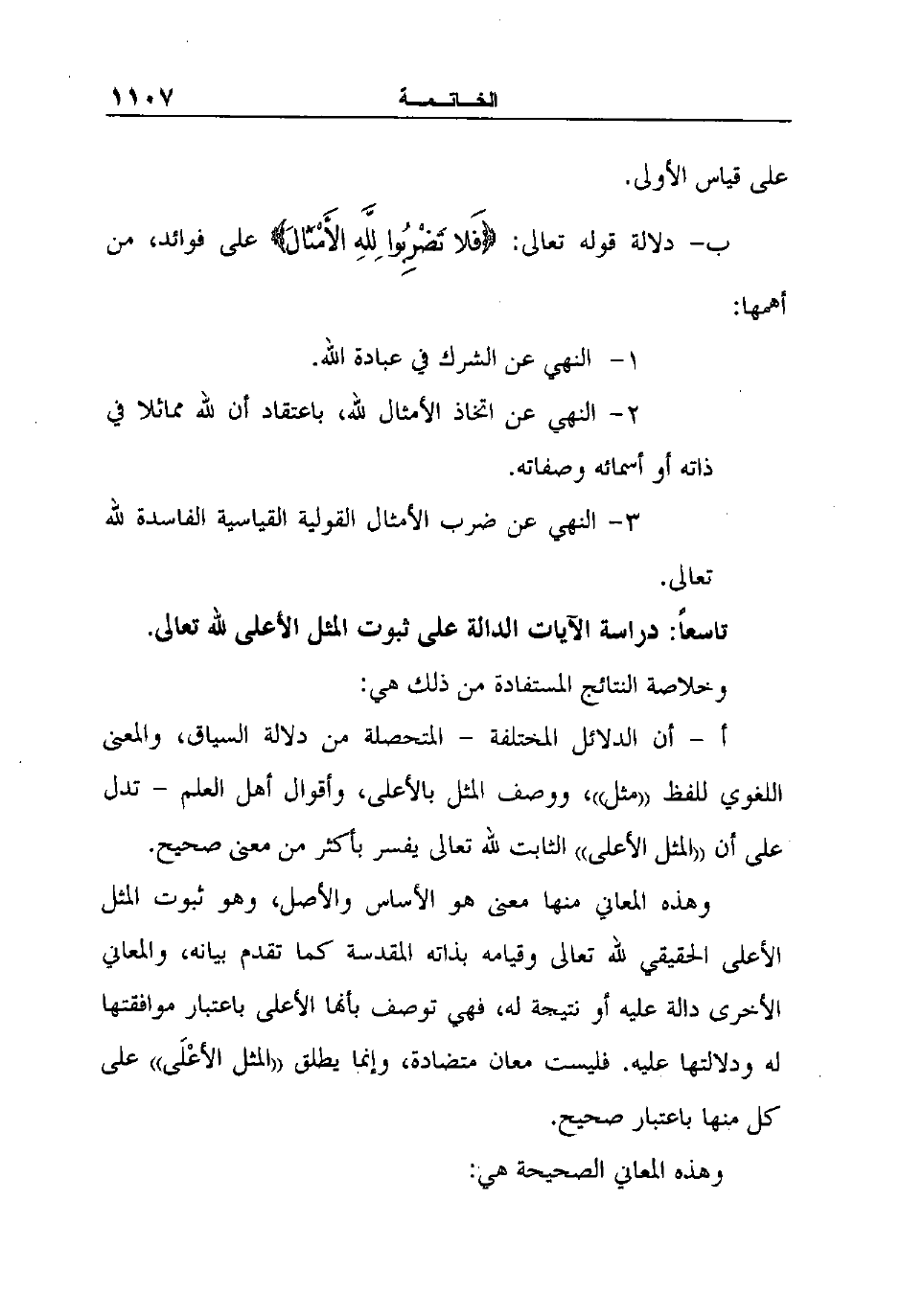 تاسعاً: دراسة الآيات الدالة على ثبوت المثل الأعلى لله تعالى.