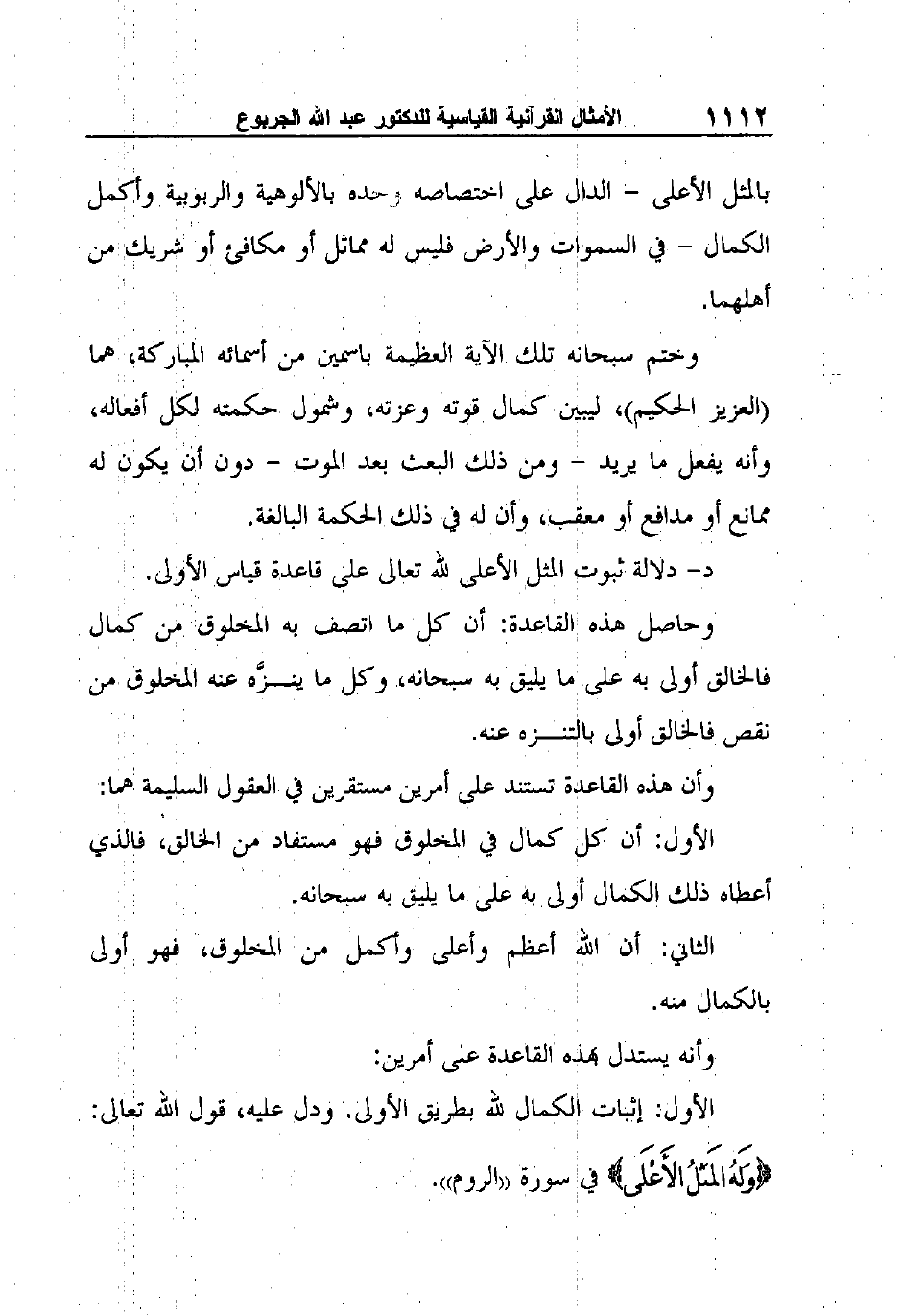 د- دلالة ثبوت المثل الأعلى لله تعالى على قاعدة قياس الأولى.
