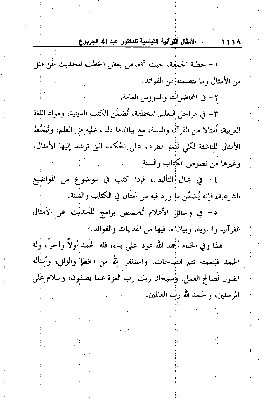 4- في مجال التأليف، فإذا كتب في موضوع من المواضيع الشرعية، فإنه يُضمَّن ما ورد فيه من أمثال في الكتاب والسنة.