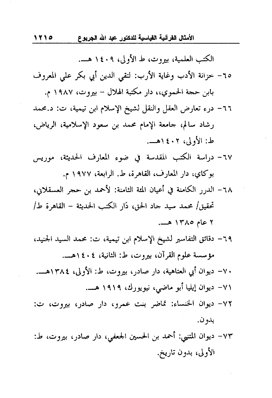 68- الدرر الكامنة في أعيان المئة الثامنة: لأحمد بن حجر العسقلاني، تحقيق/ محمد سيد جاد الحق، دَار الكتب الحديثة - القاهرة ط/ 2 عام 1385 هـ.