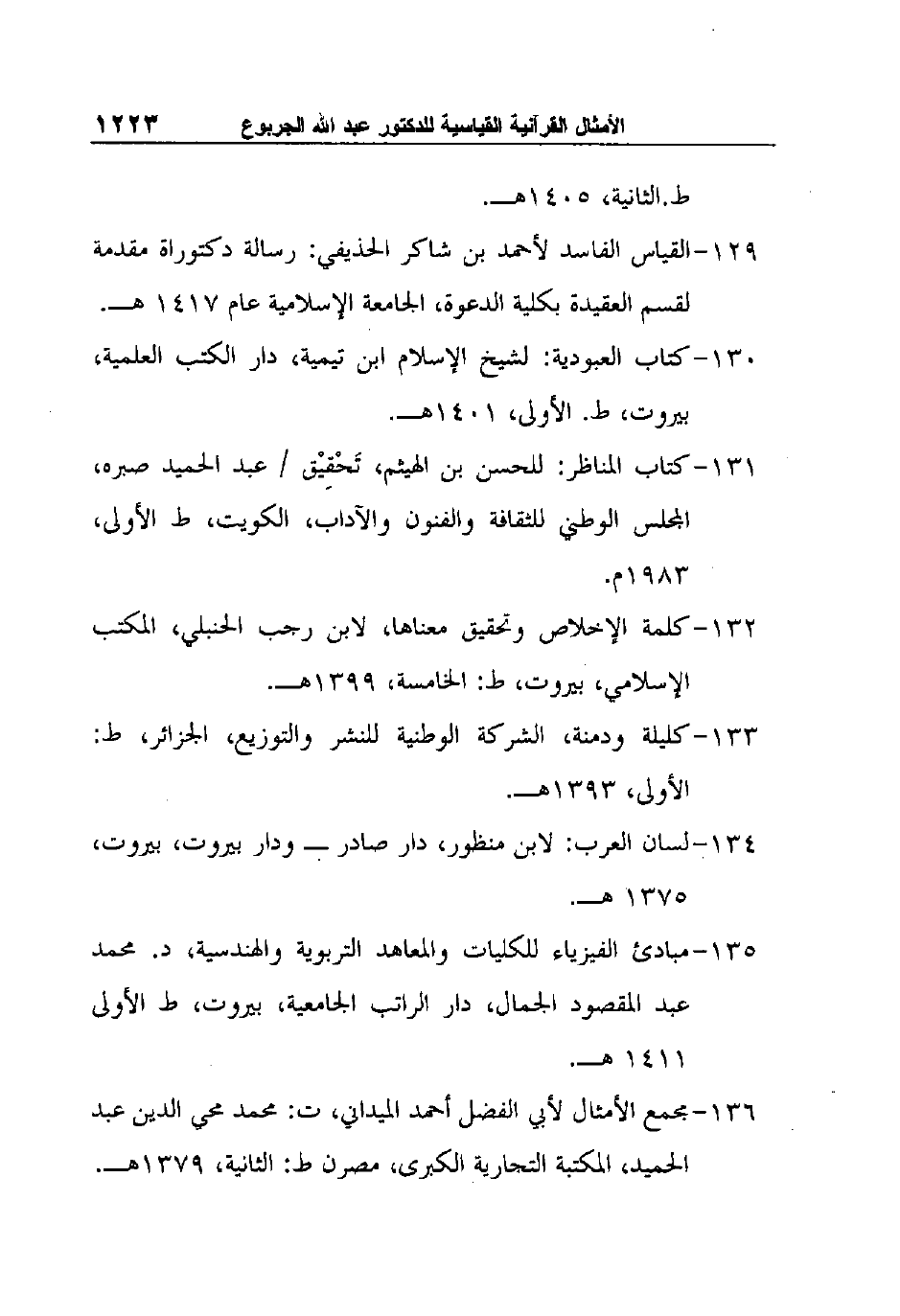 129- القياس الفاسد لأحمد بن شاكر الحذيفي: رسالة دكتوراة مقدمة لقسم العقيدة بكلية الدعوة، الجامعة الإسلامية عام 1417 هـ.