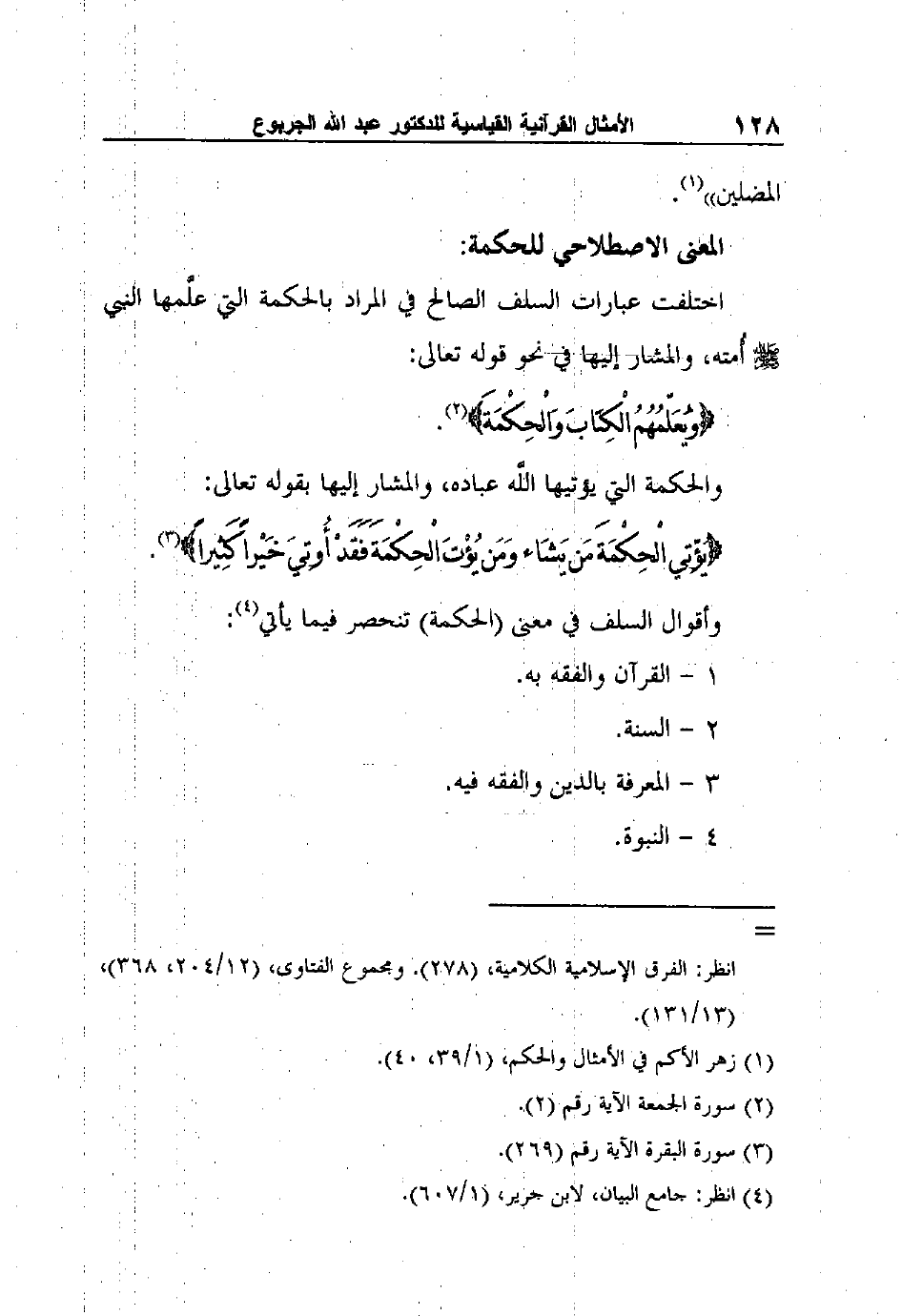 وأقوال السلف في معنى (الحكمة) تنحصر فيما يأتي4: