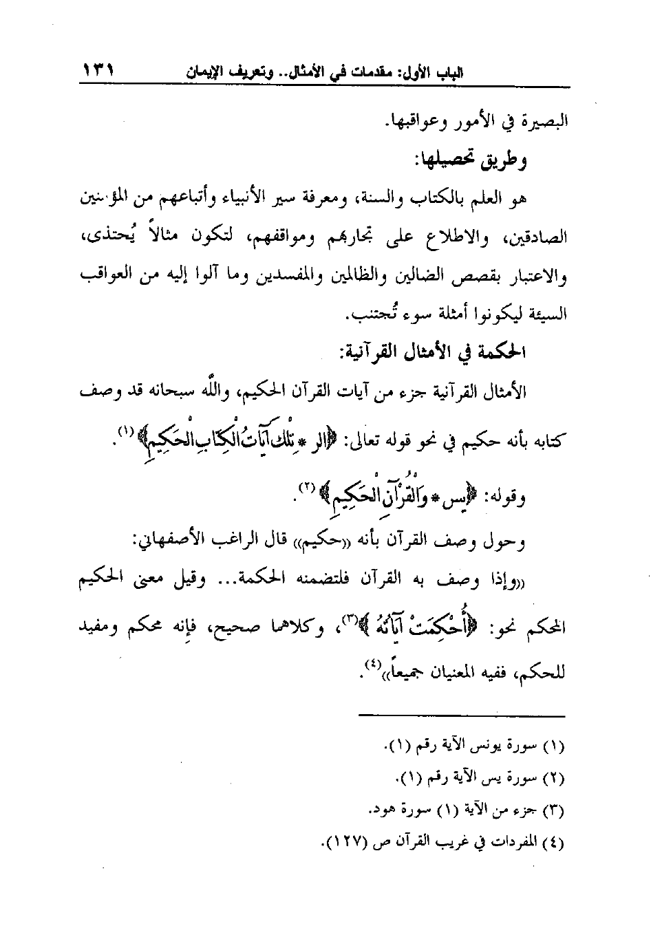 الأمثال القرآنية جزء من آيات القرآن الحكيم، واللَّه سبحانه قد وصف كتابه بأنه حكيم في نحو قوله تعالى: {الر تِلْكَ آيَاتُ الْكِتَابِ الْحَكِيمِ} 1.