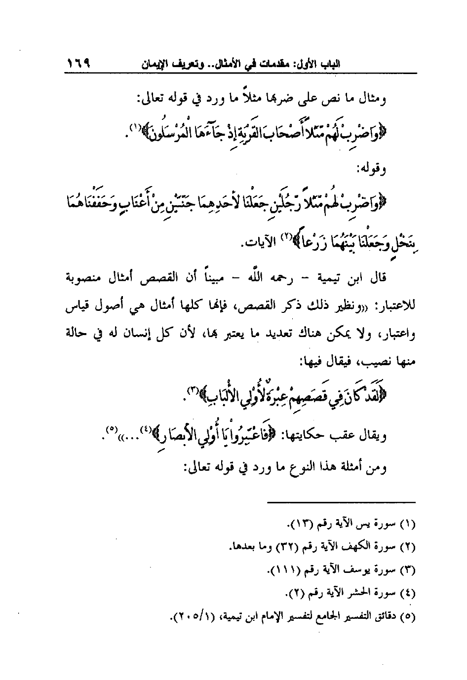 5 دقائق التفسير الجامع لتفسير الإمام ابن تيمية، (1/205) .