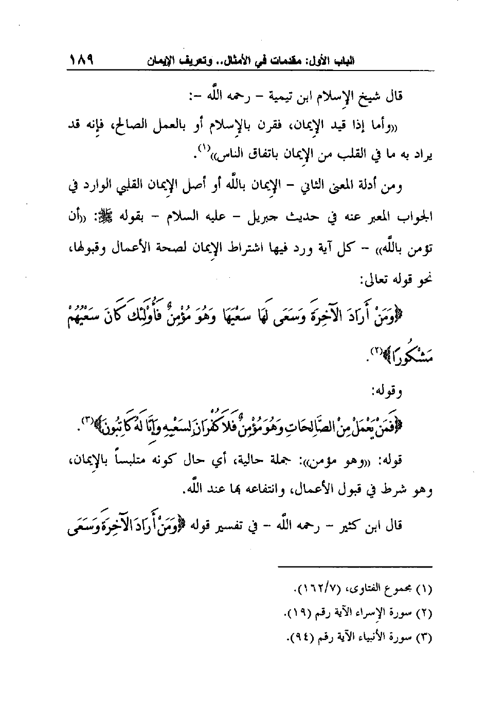 قال ابن كثير - رحمه اللَّه - في تفسير قوله {وَمَنْ أَرَادَ الآخِرَةَ وَسَعَى