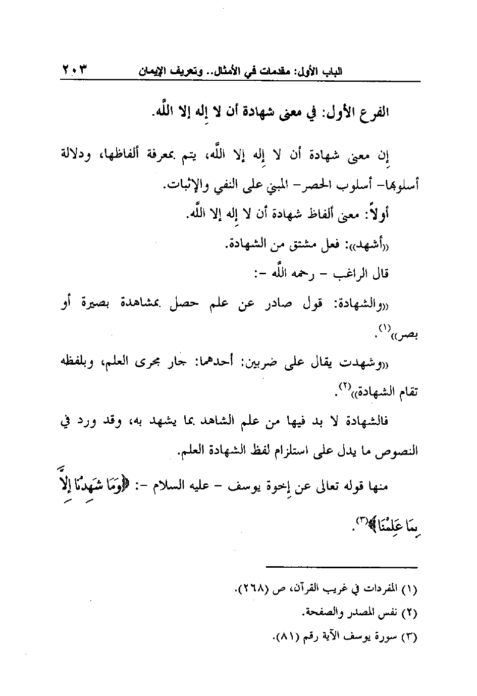 الفرع الأول: في معنى شهادة أن لا إِله إلا اللَّه.