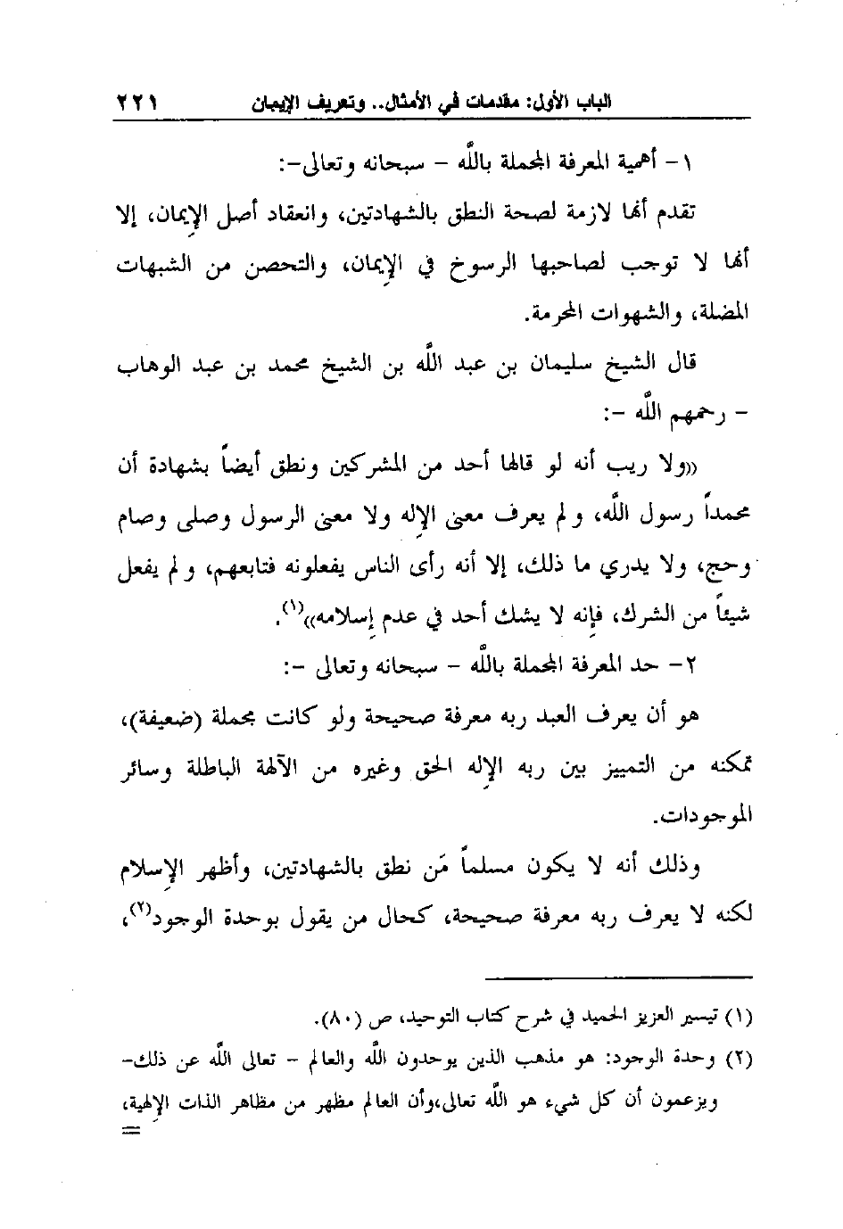 قال الشيخ سليمان بن عبد اللَّه بن الشيخ محمد بن عبد الوهاب - رحمهم اللَّه -: