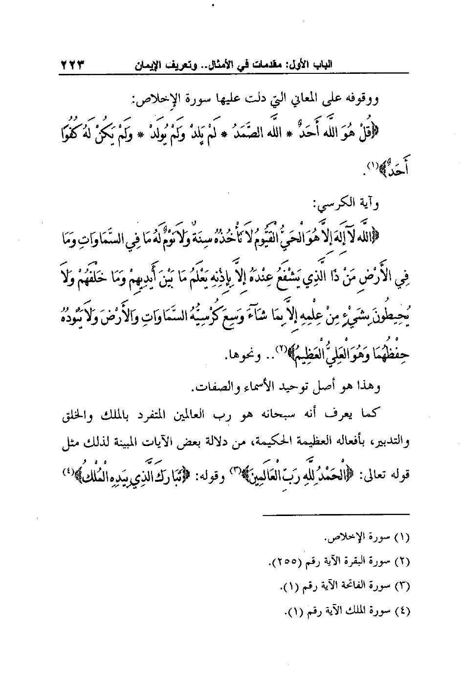 {اللَّه لآ إِلَهَ إِلاَّ هُوَ الْحَيُّ الْقَيُّومُ لاَ تَأْخُذُهُ سِنَةٌ وَلاَ نَوْمٌ لَهُ مَا فِي السَّمَاوَاتِ وَمَا فِي الأَرْضِ مَنْ ذَا الَّذِي يَشْفَعُ عِنْدَهُ إِلاَّ بِإِذْنِهِ يَعْلَمُ مَا بَيْنَ أَيْدِيهِمْ وَمَا خَلْفَهُمْ وَلاَ يُحِيطُونَ بِشَيْءٍ مِنْ عِلْمِهِ إِلاَّ بِمَا شَآءَ وَسِعَ كُرْسِيُّهُ السَّمَاوَاتِ وَالأَرْضَ وَلاَ يَئُودُهُ حِفْظُهُمَا وَهُوَ الْعَلِيُّ الْعَظِيمُ} 2.. ونحوها.