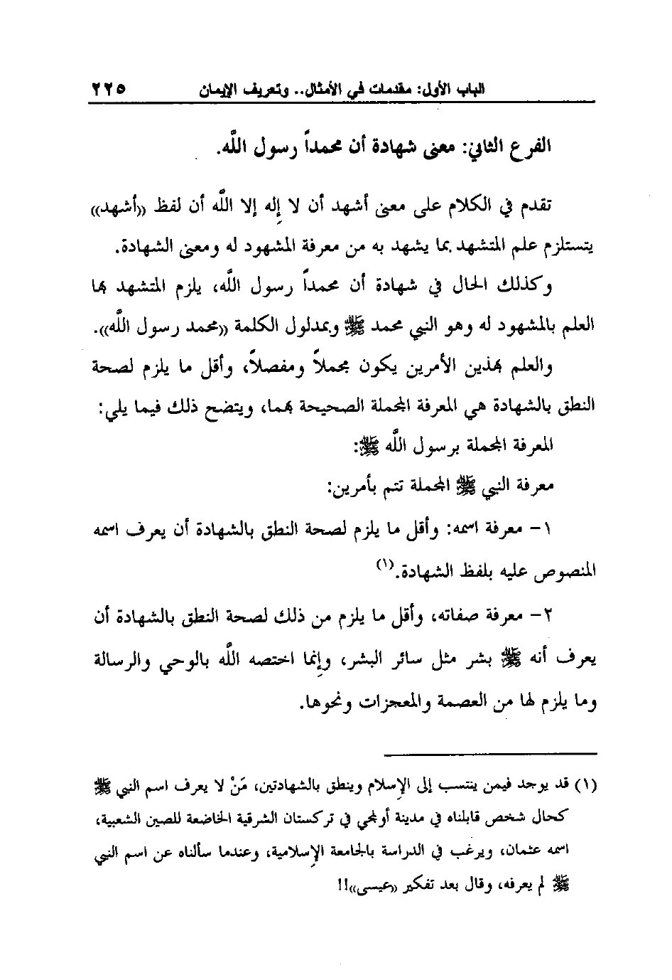 1 قد يوجد فيمن ينتسب إلى الإِسلام وينطق بالشهادتين، مَنْ لا يعرف اسم النبي صلى الله عليه وسلم كحال شخص قابلناه في مدينة أولمجي في تركستان الشرقية الخاضعة للصين الشعبية، اسمه عثمان، ويرغب في الدراسة بالجامعة الإِسلامية، وعندما سألناه عن اسم النبي صلى الله عليه وسلم لم يعرفه، وقال بعد تفكير "عيسى"!!