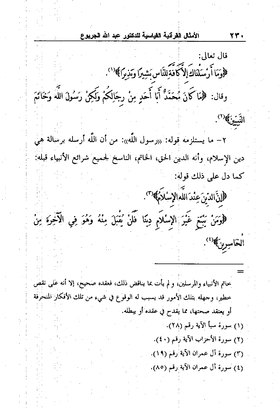 {وَمَنْ يَبْتَغِ غَيْرَ الإِسْلاَمِ دِينًا فَلَنْ يُقْبَلَ مِنْهُ وَهُوَ فِي الآخِرَةِ مِنْ الْخَاسِرِينَ} 4.