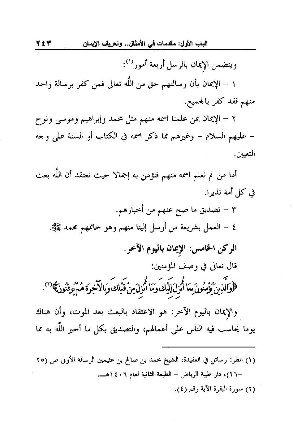 1 انظر: رسائل في العقيدة، الشيخ محمد بن صالح بن عثيمين الرسالة الأولى ص (25-26) ، دار طيبة الرياض - الطبعة الثانية لعام 1406هـ.