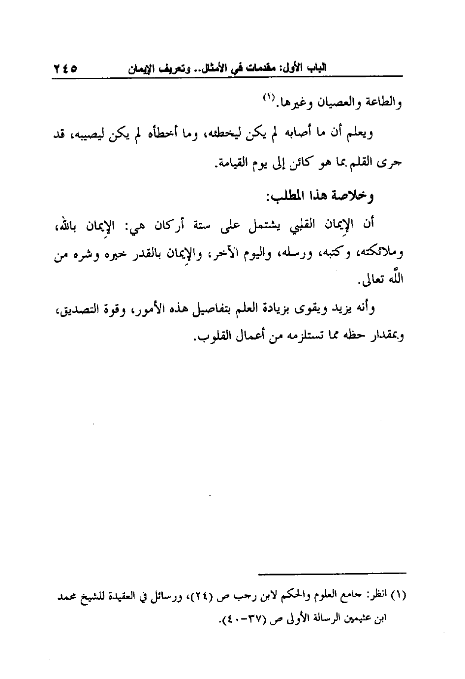 1 انظر: جامع العلوم والحكم لابن رجب ص (24) ، ورسائل في العقيدة للشيخ محمد ابن عثيمين الرسالة الأولى ص (37-40) .